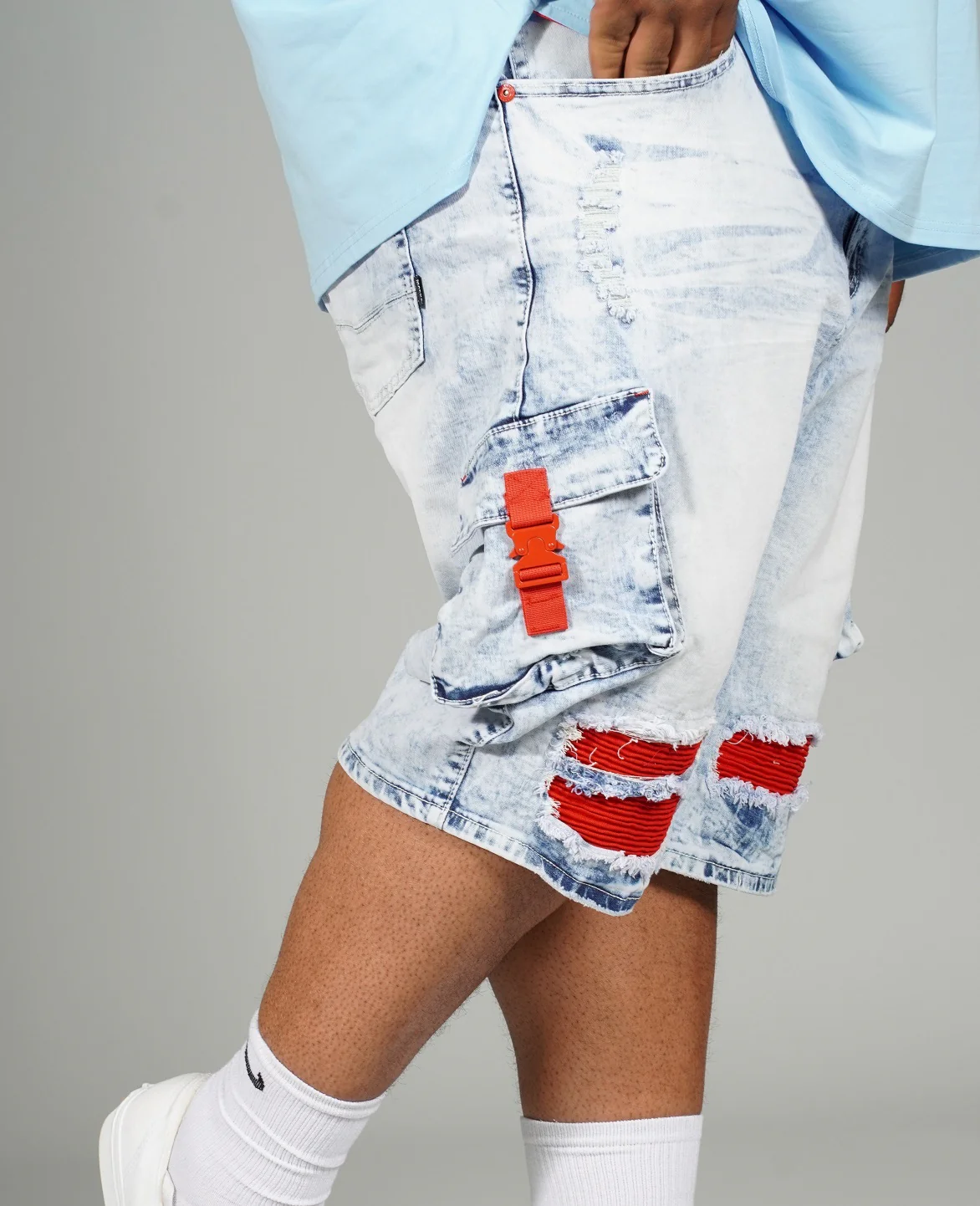 M936 - Makobi Denim Cargo Shorts - Light Wash
